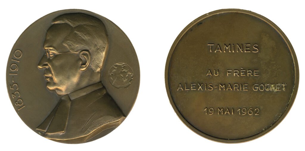 Illustration 3 : Médaille dédiée au Frère Alexis-Marie Gochet par V. Demanet (Société archéologique de Namur, Fonds Famille Thonet)